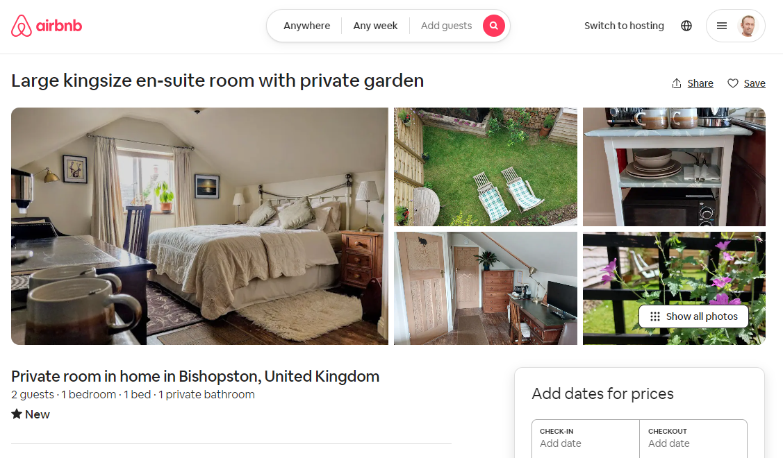- Self contained apartment: £85 to £130 / night (max 2 people)